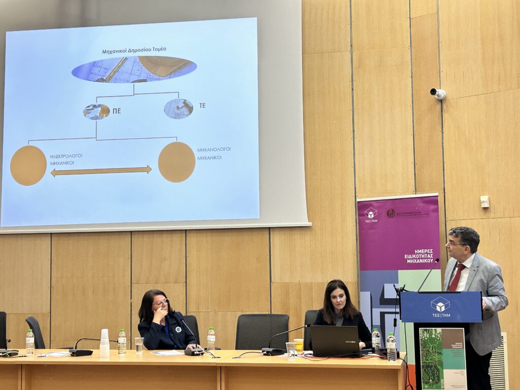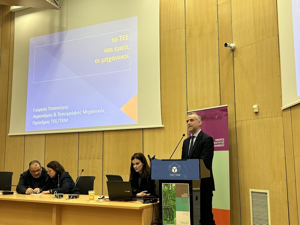 Το Προεδρείο της εκδήλωσης αποτέλεσαν εκ μέρους του ΤΕΕ/ΤΚΜ οι: κ. Άννα Μίχου, Πρόεδρος της ΜΕ Περιβάλλοντος , κ. Βασίλης Εβρένογλου, Προϊστάμενος του Τμήματος Επαγγελματικών Θεμάτων και κ. Ελένη Δουλγέρογλου, στέλεχος του Τμήματος Επαγγελματικών Θεμάτων.