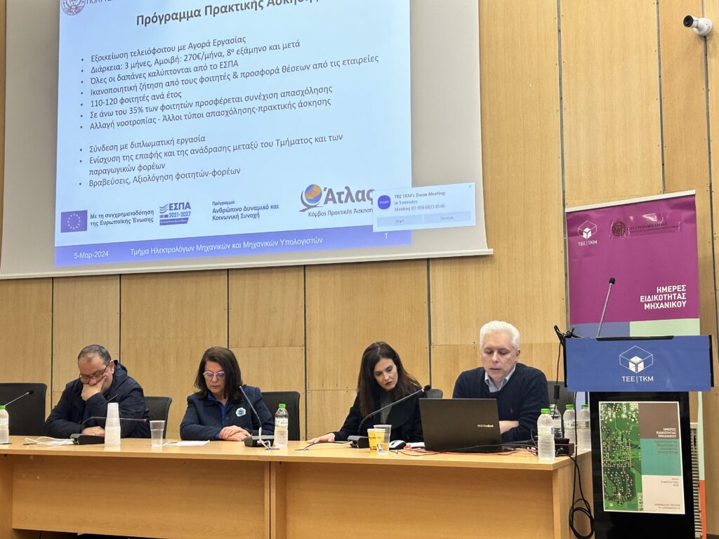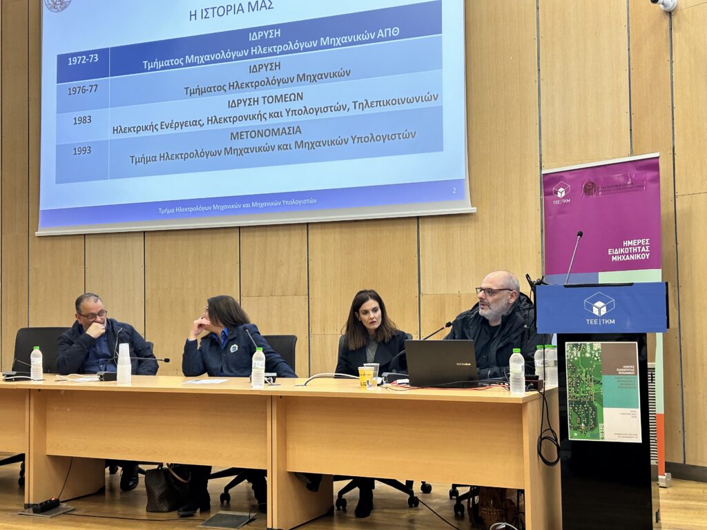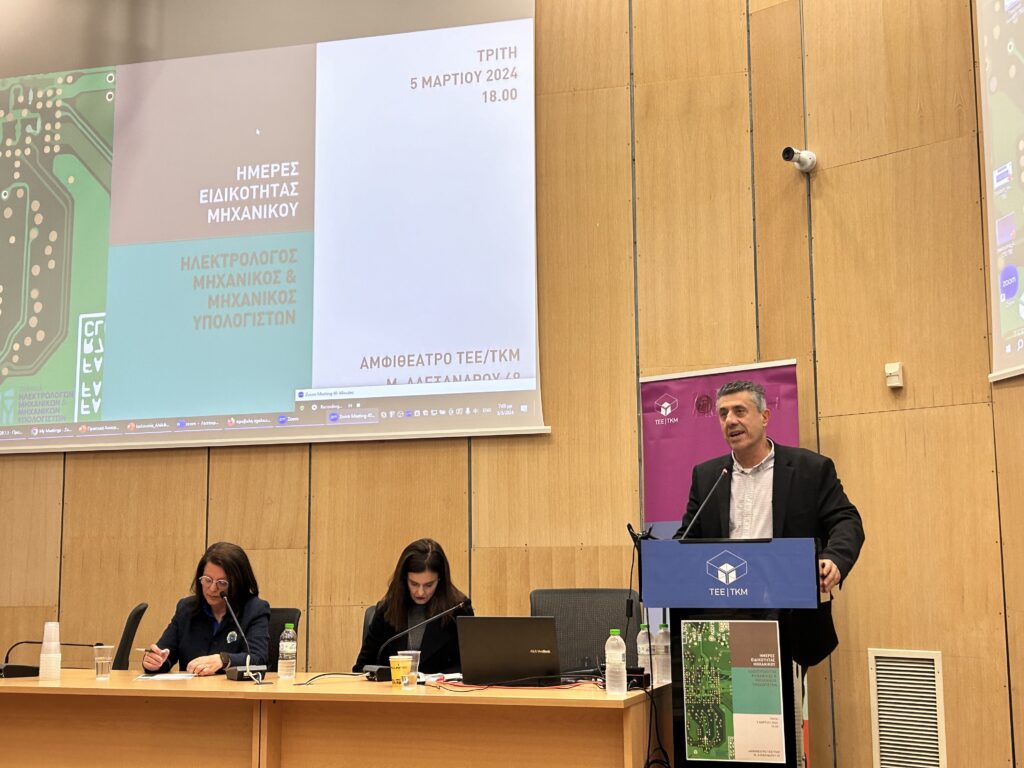Ο ρόλος των Ηλεκτρολόγων Μηχανικών και των Μηχανικών Ηλεκτρονικών Υπολογιστών στην ανάπτυξη, σε μια εποχή ραγδαίου ψηφιακού μετασχηματισμού και πολλαπλών τεχνολογικών εξελίξεων, αναδείχτηκε στη διάρκεια της εκδήλωσης που συνδιοργάνωσαν το ΤΕΕ/ΤΚΜ και το Τμήμα ΗΜΜΥ της Πολυτεχνικής Σχολής του ΑΠΘ, στο πλαίσιο του κύκλου εκδηλώσεων με τη γενική επωνυμία “Ημέρες Ειδικότητας Μηχανικού”.