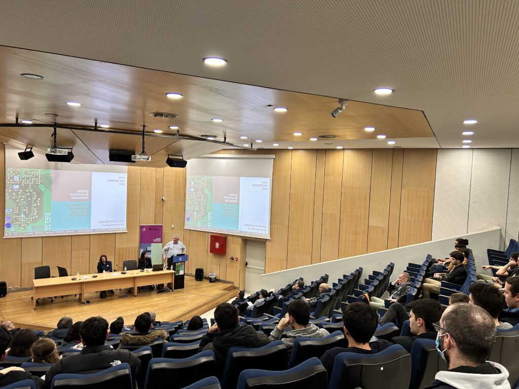 Ο Επίκουρος Καθηγητής του Τμήματος και Επιστημονικός Υπεύθυνος Πρακτικής Άσκησης κ. Μηνάς Αλεξιάδης αναφέρθηκε στο πρόγραμμα πρακτικής άσκησης των φοιτητών του Τμήματος και στις πολλαπλές ευκαιρίες που υπάρχουν στην αγορά εργασίας για τους απόφοιτους. Ο καθηγητής και Διευθυντής της Μονάδας Τηλεπικοινωνιακών Συστημάτων και Δικτύων κ. Γεώργιος Καραγιαννίδης, ο οποίος αναγνωρίζεται διεθνώς ως ένας από τους επιστήμονες με την μεγαλύτερη επιρροή σε παγκόσμιο επίπεδο στα πεδία της Πληροφορικής και των Τηλεπικοινωνιών, ανέλυσε τις οικονομικές και κοινωνικές διαστάσεις της ραγδαίας ανάπτυξης της επιστήμης του ΗΜΜΥ αλλά και τις προκλήσεις και τους κινδύνους που θα κληθεί να αντιμετωπίσει η παγκόσμια επιστημονική κοινότητα τα επόμενα χρόνια.