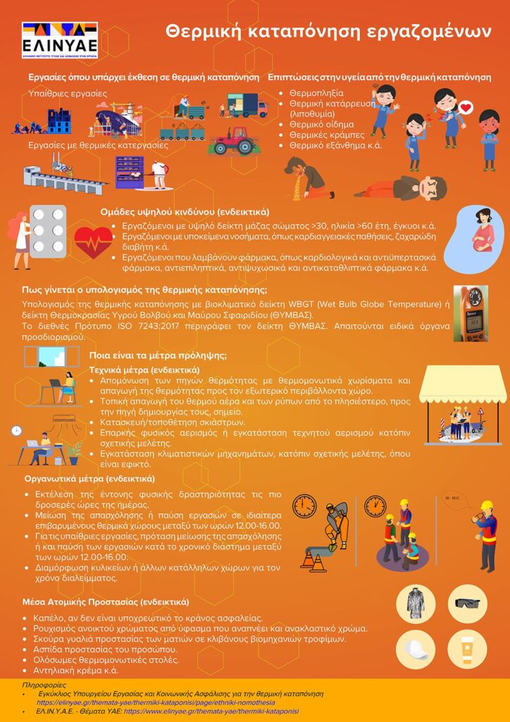 Η ίδια εγκύκλιος περιελάμβανε αυστηρή εργοδότες να προβούν τόσο στη λήψη των απαραίτητων τεχνικών και οργανωτικών μέτρων, όσο και σε μείωση απασχόλησης ή/και παύση εργασιών κατά τις ώρες θερμοκρασιακής αιχμής (12.00 – 17.00) των τελευταίων ημερών, για την αποφυγή των φαινομένων θερμικής καταπόνησης. Σε περίπτωση μη τήρησης των υποχρεώσεων της διάταξης επιβάλλεται στην επιχείρηση, από την Επιθεώρηση Εργασίας, χρηματικό πρόστιμο 2.000 ευρώ ανά εργαζόμενο.